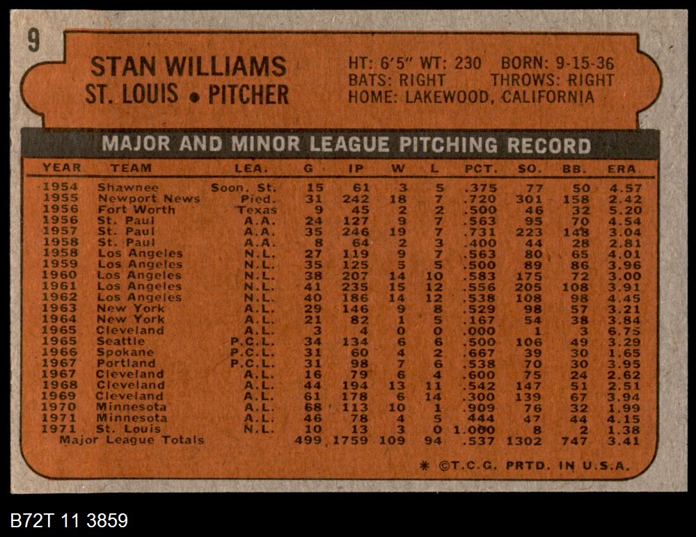 | 1972 Topps #9 Stan Williams | 8 - NM/MT | Front | Back |