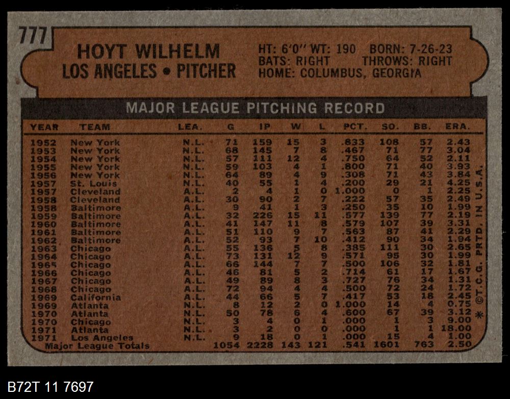 | 1972 Topps #777 Hoyt Wilhelm | 8 - NM/MT | Front | Back |