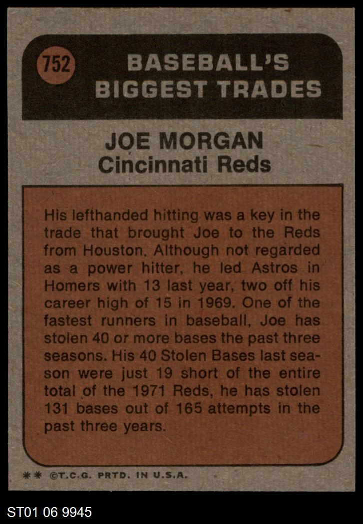| 1972 Topps #752 - Joe Morgan Traded | 6 - EX/MT | Front | Back |