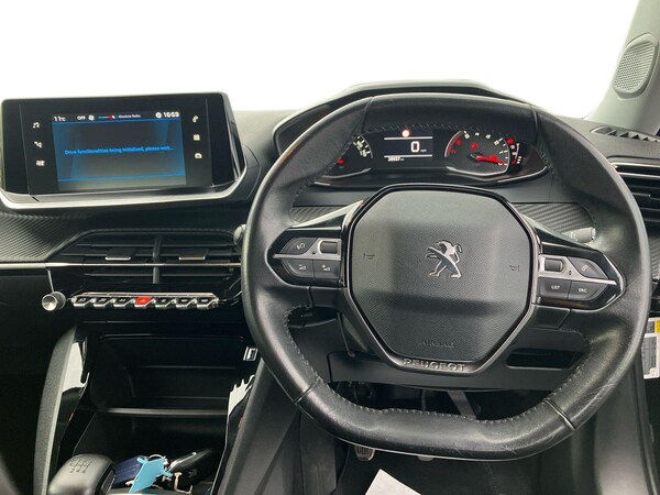 ..Bluetooth telephone facility, Driver attention warning, Exterior temperature indicator with ice warning, Lane keep assist, Mirror screen with mirror link, apple carplay and android auto, Multi function trip computer, PEUGEOT i-Cockpit with 3.5'' instrument panel display, PEUGEOT i-Cockpit with 7'' capacitive colour touchscreen, PEUGEOT i-Cockpit with compact steering wheel, PEUGEOT SOS and assistance, Programmable cruise control and speed limiter, Push button start, Rear parking sensor, Smart phone docking station, Speed limit recognition and recommendation, 6 speakers radio with mp3 compatible, DAB Radio (Digital Audio Broadcasting), USB socket, Voice recognition for radio, navigation and telephony features, 2 X Rear number plate lights, Automatic hazard light activation upon heavy brake application, Black front lower bumper, Black front wing trim, Body coloured exterior door handles, Colour coded door mirror shells, Colour coded rear spoiler, Colour coded roof, Electric heated door mirrors, Front windscreen wiper, Gloss black finish on B pillar, Gloss black rear cluster connecting strip, Halogen Eco LED headlights, Headlights left on audible warning, LED daytime running lights with distinctive tooth design, Model designation badges front and rear, One touch electric front/rear windows with pinch protection, Radiator grille black higher part, Rear full LED 3D peugeot signature claw effect lights with daylight function, Rear reversing lights, Rear view mirror, Rear windscreen wiper triggered automatically in reverse gear, Tailgate with heated rear windscreen and wiper blade, Wheel arch extensions, 1/3 to 2/3 split folding rear seats, 12V socket, Driver and front passenger comfort seats, Driver and front passenger seat manual adjustment in longitudinal and back rest angle, Driver seat mechanical height adjustment, Electric power steering with reach and rake adjustable steering column, Front interior light with reading spotlights x2 in rear, Gear lever - manual in satin chrome, Gear shift indicator, ISOFIX child seat mounting points on passenger seat, Leather steering wheel, Low centre console, Manual air conditioning, Orange contrast stitching to front centre console, door panels and dashboard facia, Piano keys gloss black plated toggle switches to access main functions of the vehicle, Roof lining - light grey, Seatbelt unfastened on the move audible and visual alert for front and rear seats, Standard boot floor, Tri material cloth upholstery, Visibility
