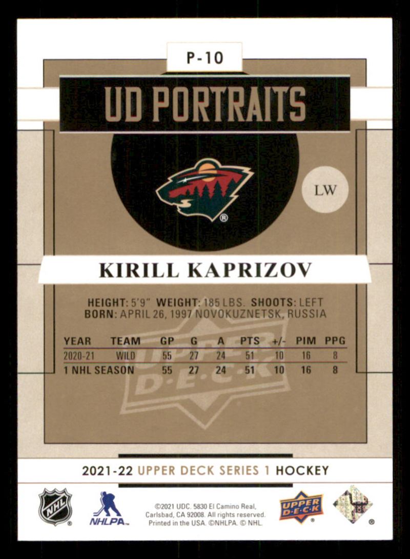 | 2021-22 Upper Deck UD Portraits Kirill Kaprizov Minnesota Wild #P-10 | ||||||||||||||||