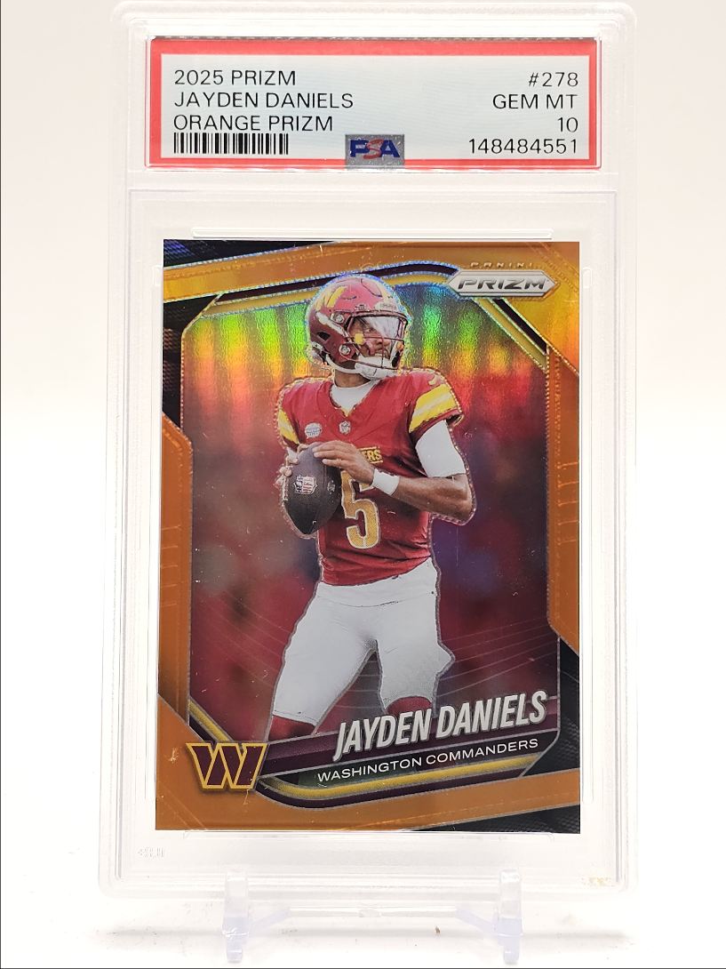 JAYDEN DANIELS 2025 PRIZM ORANGE WASHINGTON COMMANDERS /249 PSA 10 Q3098