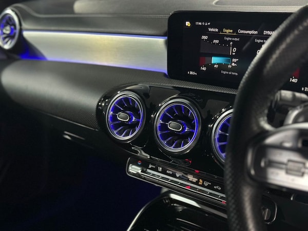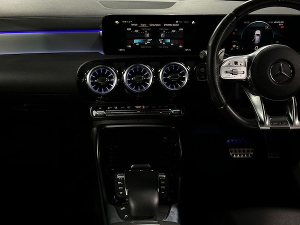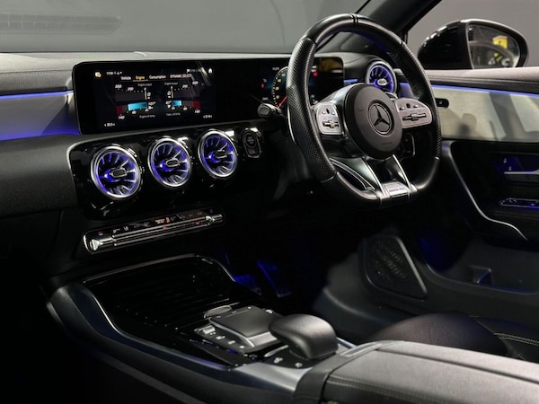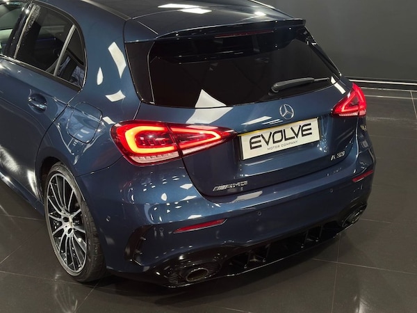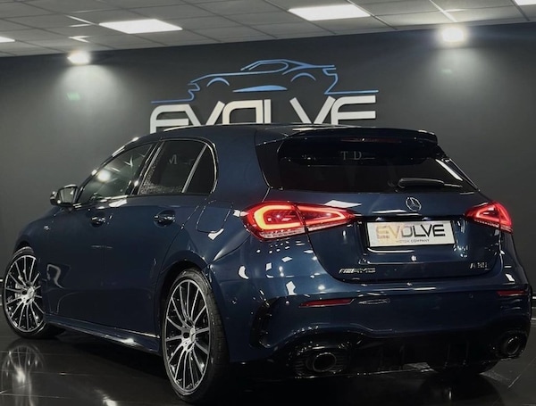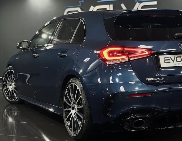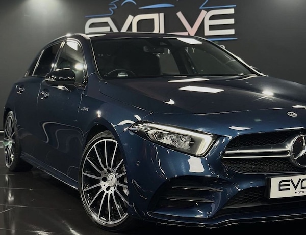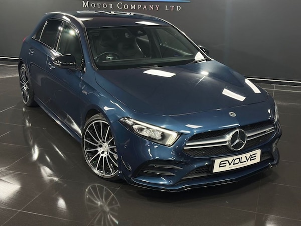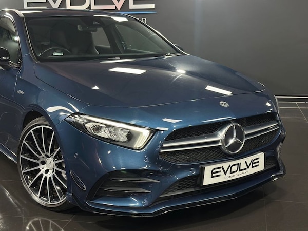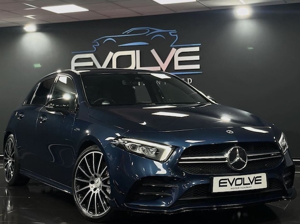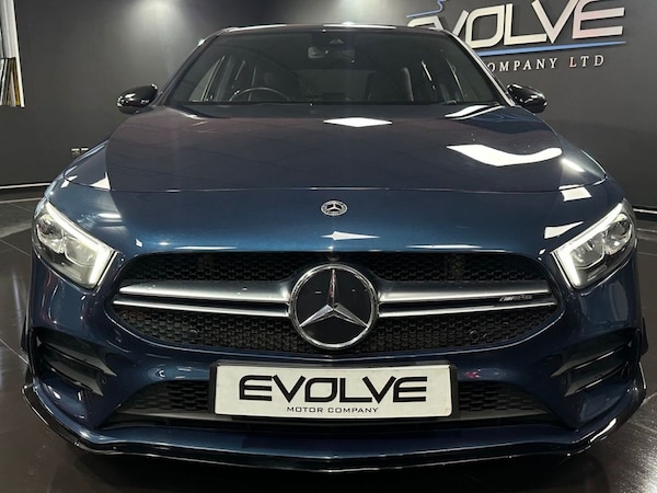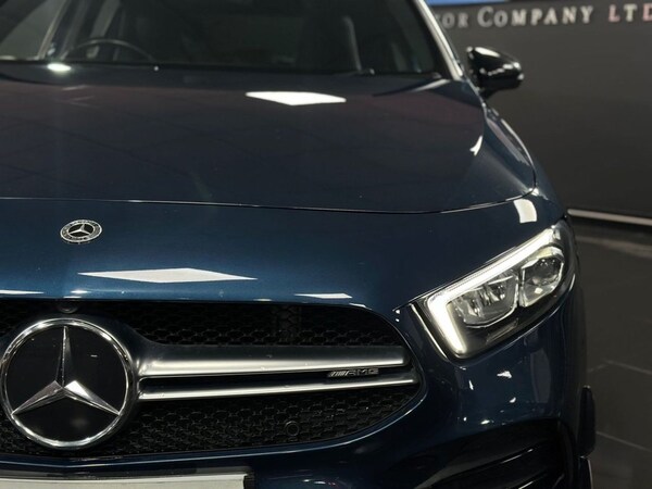 Excellent Example Mercedes-Benz A35 AMG Executive in Metallic Denim Blue with Just 50,000 Miles Benefiting from Full Service History Specification to include: Paint metallic Denim Blue Metallic leather (black) light longitudinal-grain aluminium Parking Sensors 19" Alloys Automatic LED Headlights Full Leather Interior Heated Front Seats Multifunction Steering Wheel Satellite Navigation Interior Ambient Lighting .Leather - Black, Denim Blue, 19in Alloy Wheels - AMG Multi-Spoke - Light Alloy - Painted High-Gloss Black with High-Sheen Finish, ABS - Anti-Lock Braking System with BAS - Brake Assist, AMG Bodystyling - AMG Front Apron with Front Splitter - AMG Side Sill Panels and AMG Rear Apron with Visible Exhaust Tailpipe Trim Elements, AMG Night Package, AMG Radiator Grille with Twin Blade Lamella and AMG Lettering, AMG Spoiler Lip on the Roof Spoiler, AMG Suspension, ATTENTION Assist, Active Bonnet - Pedestrian Safety Measure which Detects an Impact and Raises Bonnet by 65mm, Active Brake ASSIST, Active Lane Keeping Assist, Adaptive Brake Assist with Hold Function and Hill Start Assist, Adaptive Brake Lights, Air Conditioning - THERMOTRONIC Luxury Automatic Climate Control - Two-Zone with Display, Air Vents - Black with Silver Chrome Elements, Airbag - Kneebag for Driver, Airbags - Dual Stage - Driver and Front Passenger, Airbags - Head and Sidebags - Driver and Front Passenger, Airbags - Windowbags for Driver and Front Passenger, Alarm System with Immobiliser and Interior Protection - Thatcham Category 1, Automatic Child Seat Recognition Sensor, BITURBO 4MATIC Lettering on Front Wings, Beltline Strips - High Gloss Black, Bodystyling - Side Skirts - Body-Coloured, Brake Calipers with AMG Lettering on Front, Brake-Pad Wear Warning Indicator, Brushed Stainless Steel Sports Pedals with Rubber Studs, Bumpers - Body Coloured, Car Wash Mode, Centre Armrest - Front with Stowage, Childproof Locks - Manually Operated for Rear Doors and Electrically Operated for Rear Power Windows, Crash-Responsive Emergency Lighting, Cruise Control with Limiter, Cup Holder - Twin Front, DAB Digital Radio Tuner, Direct Steer Speed-Sensitive Steering, Door Handles - Body Coloured, Door Mirrors - Electrically Adjustable and Heated with Integrated LED Indicators, Dual Bluetooth Interfaces, Dynamic Select with a Choice of Driving Modes - Comfort-Sport-Sport Plus-Slippery and Individual, ESP - Electronic Stability Programme with ASR - Acceleration Skid Control, ESP Curve Dynamic Assist, Electric Parking Brake, Electric Windows - 4, Exhaust System - AMG Sports Exhaust System with Two Round Tailpipes Attached to the Rear Apron, Exhaust System Featuring Automatically-Controlled Exhaust Flap, First Aid Kit and Warning Triangle, Floor Mats - AMG Lettering, Front Apron with Flics as Air Deflector Elements on the Outer Air Intakes, Front Door Sills with AMG Lettering, Front Splitter and Trim Elements on