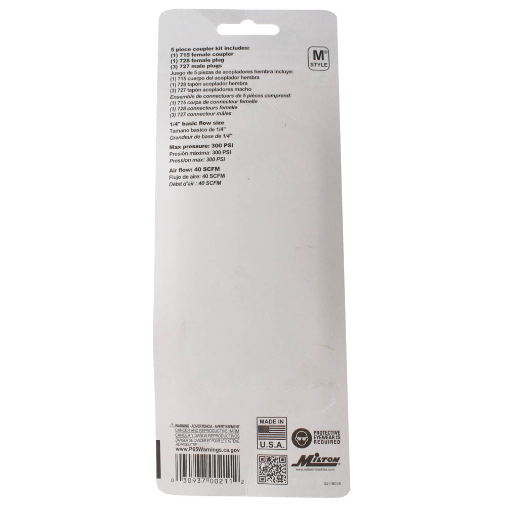 Milton S-211 5 Piece M Style Coupler and Plug Kit 1/4" NPT Made in The U.S.A.