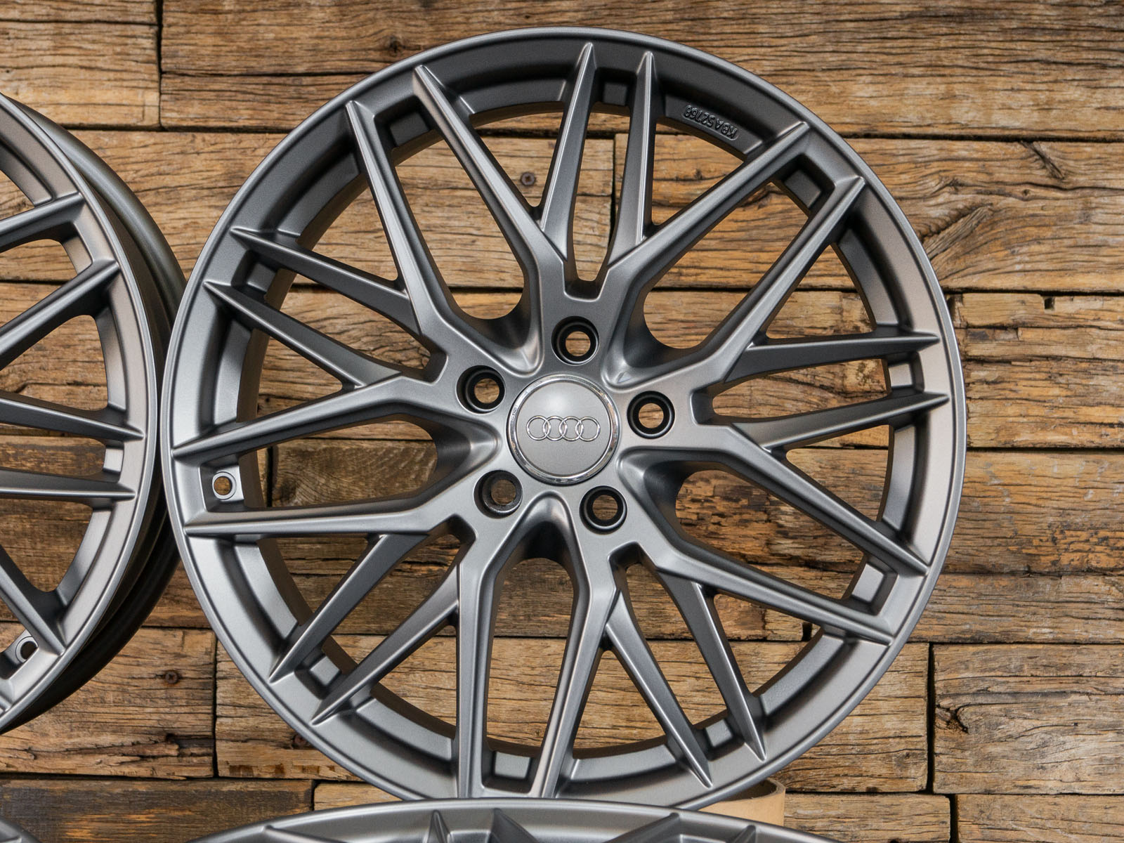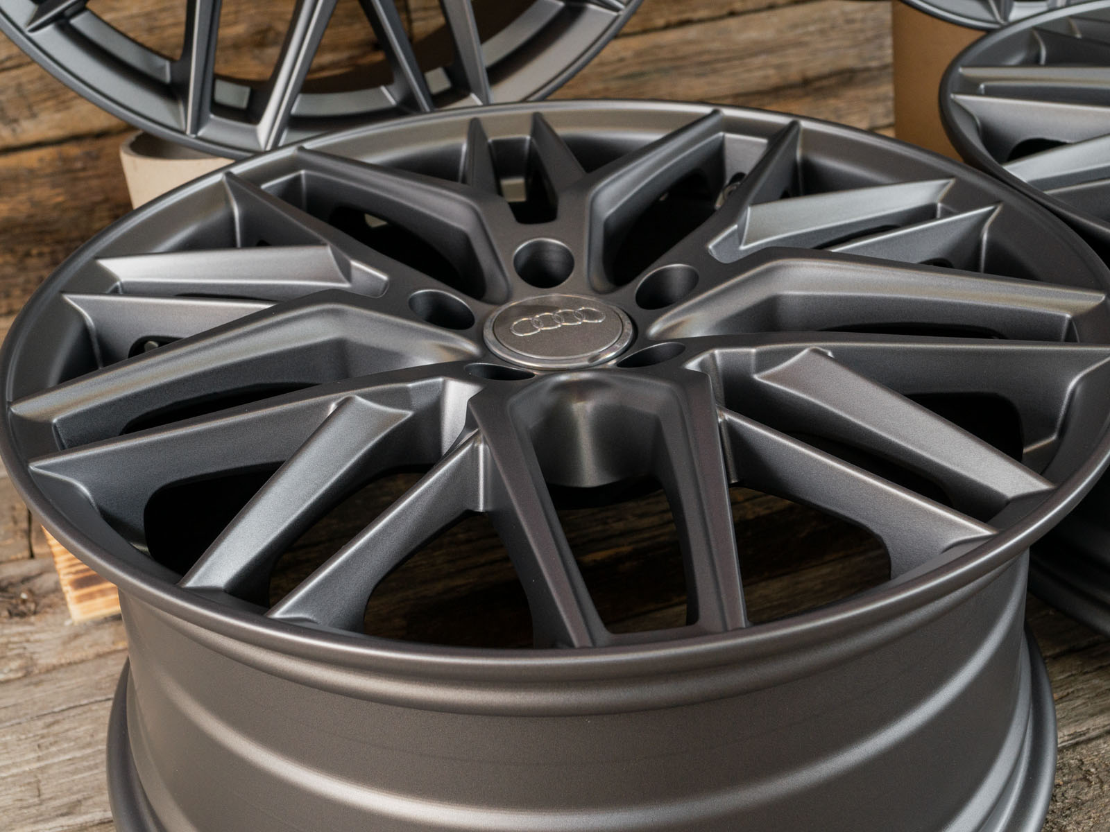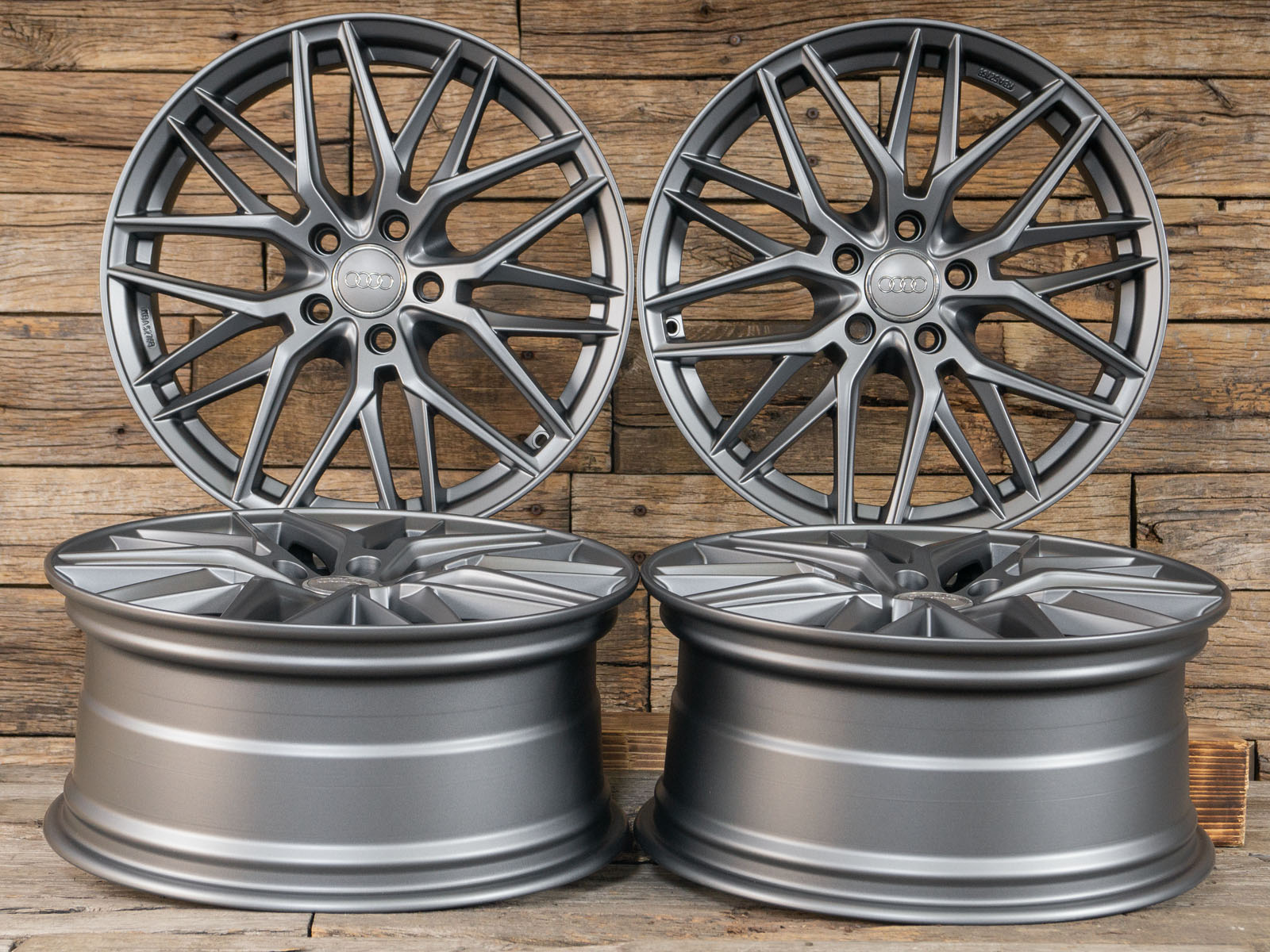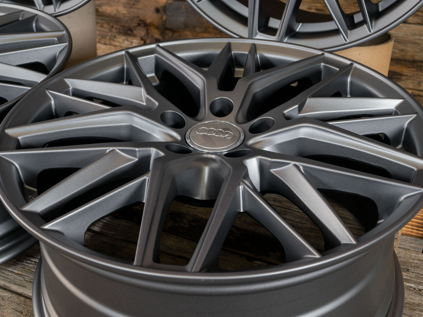4x neue Alufelgen 18 Zoll ohne Reifen - RW01 8Jx18 ET45 5x112 Grau Matt - 1x ABE - 4x Nabendeckel Raederwerk (Audi Deckel nicht enthalten)