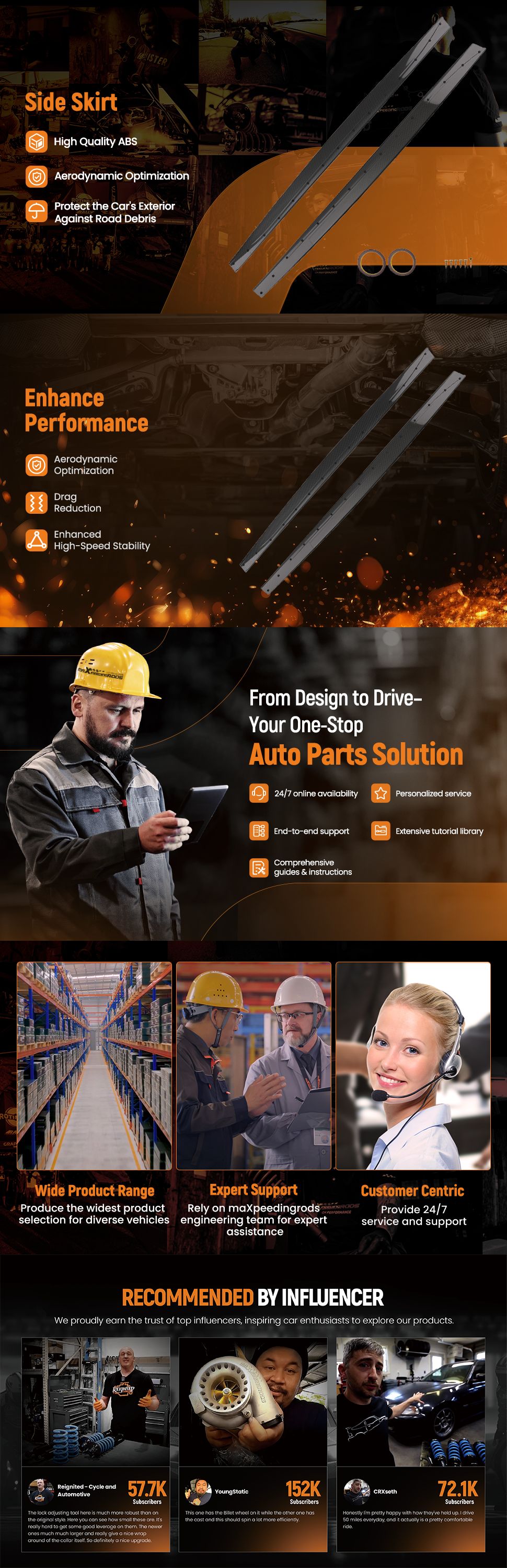 Streamline airflow along the sides of the vehicle, reducing drag and improving stability at high speeds. This enhances fuel efficiency and overall vehicle performance.
