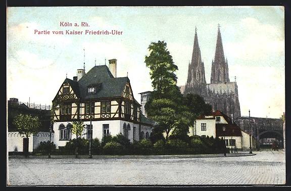 AK Köln am Rhein, Partie am Kaiser Friedrich-Ufer mit dem Dom im Hintergrund