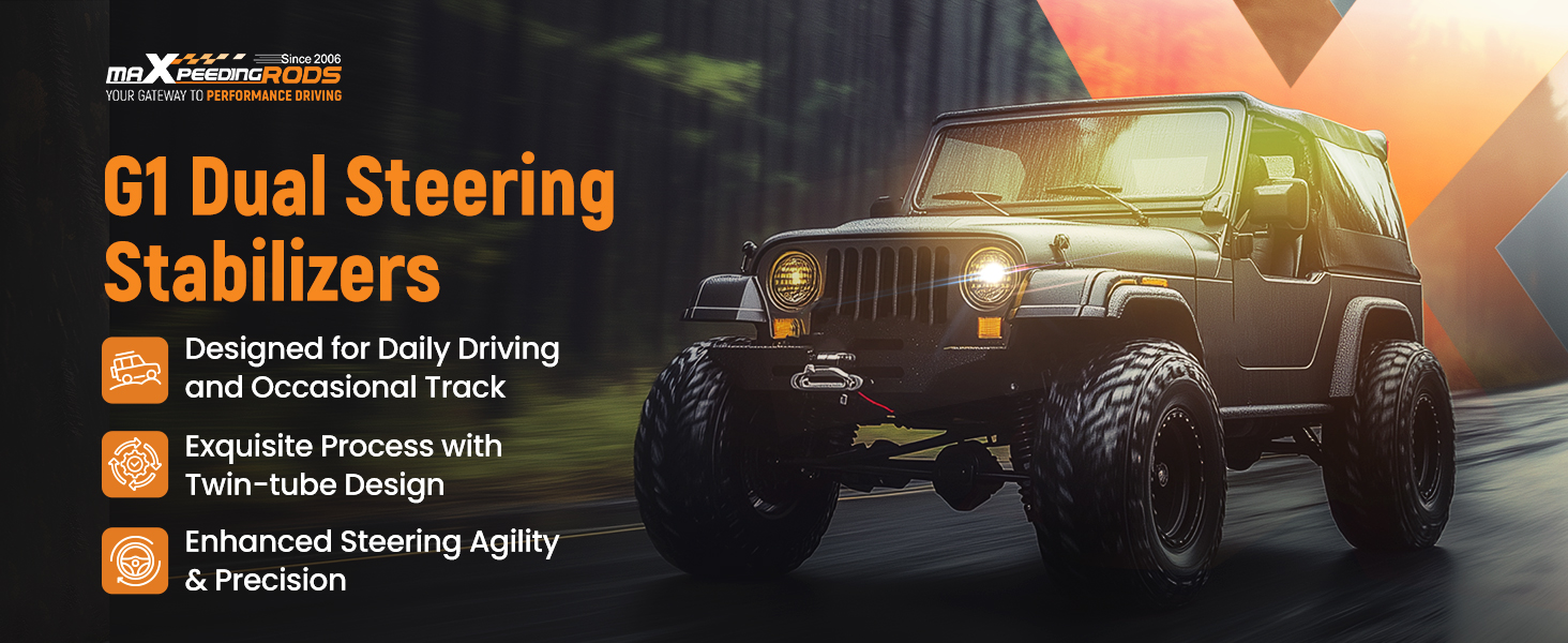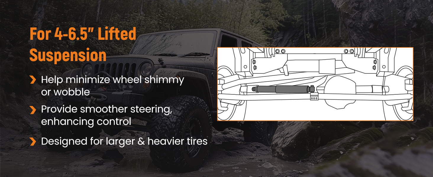 Carbon Steel Dual Steering Stabilizer for Jeep Wrangler 1987-95 Lifted