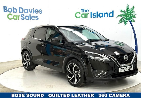 Gorgeous One Owner TEKNA + New Model Nissan Qashqai is a top-of-the-range edition includes Pearl Black Metallic Paint, Nappa Quilted Leather Heated Seats and Park Assist & 360 Parking Camera, Panoramic Glass Roof, Bose Sounds System, Touchscreen SATNAV & CARPLAY, 20" Diamond Cut Alloy Wheels, Apple Carplay & Android Auto, Heated Steering Wheel, 12 Way Electric Seat Adjustment & Memory Seats, Bluetooth Media, Dual Zone Climate Control, Cruise Control, Auto Lights and Wipers, DAB Radio, Great FULL Service History & 2 Keys to list a few. ****** Bob Davies Car Sales is established as a trusted supplier of quality cars. Family business providing low mileage cars for over 40 years. High standards, great reputation & 5-star customer service. Best value in 100 mile radius. ***** Request a personal walk round on any car and well make sure youre happy before reserving, travelling or delivery. No pressure, no fuss, no fees. Secure with £100 refundable deposit.***** We deliver all over the UK to your door with our successful "Mouse to House" delivery. Wherever you live, we will bring your perfect car to you. Feel confident in the quality and condition of our vehicles, our warranty covers the UK.****** Best Rate Finance available to all, even for poor credit. No deposit needed just contact us and we will tailor to suit you. Part Exchange Very Welcome. " Quality Cars at Sensible Prices".Quilted Premium Leather & Heated Seats, 20" Alloys & Panoramic Glass Roof, SATNAV CARPLAY & 360 CAMERA, One Owner Full Service History, Bose Sounds Pack & Power Tailgate, Pearl Black, Quilted Premium Leather , Nissan Connect 12.3in Touchscreen Infotainment System, NissanConnect Navigation, 20in Alloy Wheels - Diamond Cut, 360 View Camera, Bluetooth with Audio Streaming, Bose Sounds Pack, Front USB Connections - Type A and Type C, Privacy Glass, Glass Roof Pack, TomTom Services Live Traffic, Wireless Apple CarPlay, Wireless Phone Charger, Rear Cross Traffic Alert, Rear Roof Spoiler, Lane Departure Warning, Lane Departure Prevention, Intelligent Lane Intervention, Traffic Sign Recognition, Two Rear ISOFIX Child Seat Anchorage Point with Top Tether, Rear Parking Sensors, Lane Keep Assist, Intelligent Cruise Control, Intelligent Blind Spot Intervention, Front Parking Sensors, Front Heated Seats, Advanced Intelligent Key with Driver Memory Storage - Seats - Mirrors - Audio, Automatic Dual Zone Climate Control with Pollen Filter, Electrically Adjustable Drivers Seat with Massage and Memory Function, Tech Pack - Drive Assist - HUD, Heated Steering Wheel, Handsfree Automatic Opening Power Tailgate, Google Maps Services - Search - Weather - 3D Maps and Google Street View, Intelligent Around View Monitor, Blind Spot Warning