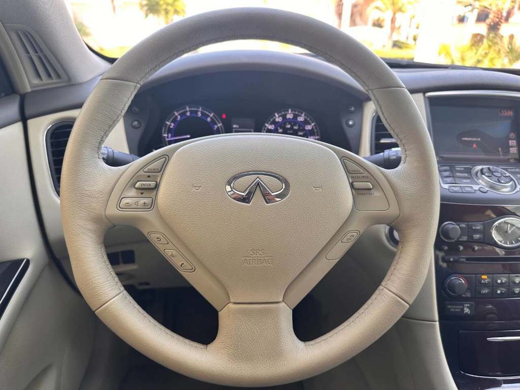 Inside, the EX35 Journey continues to distinguish itself with thoughtful technology and a clean, intuitive layout. The infotainment screen with AM/FM radio and navigation places key functions clearly within view, while the overall control layout reflects Infiniti’s reputation for blending luxury features with straightforward usability. This is not a vehicle that relies on gimmicks; instead, it delivers a polished, cohesive driving environment built around comfort, clarity, and quality.