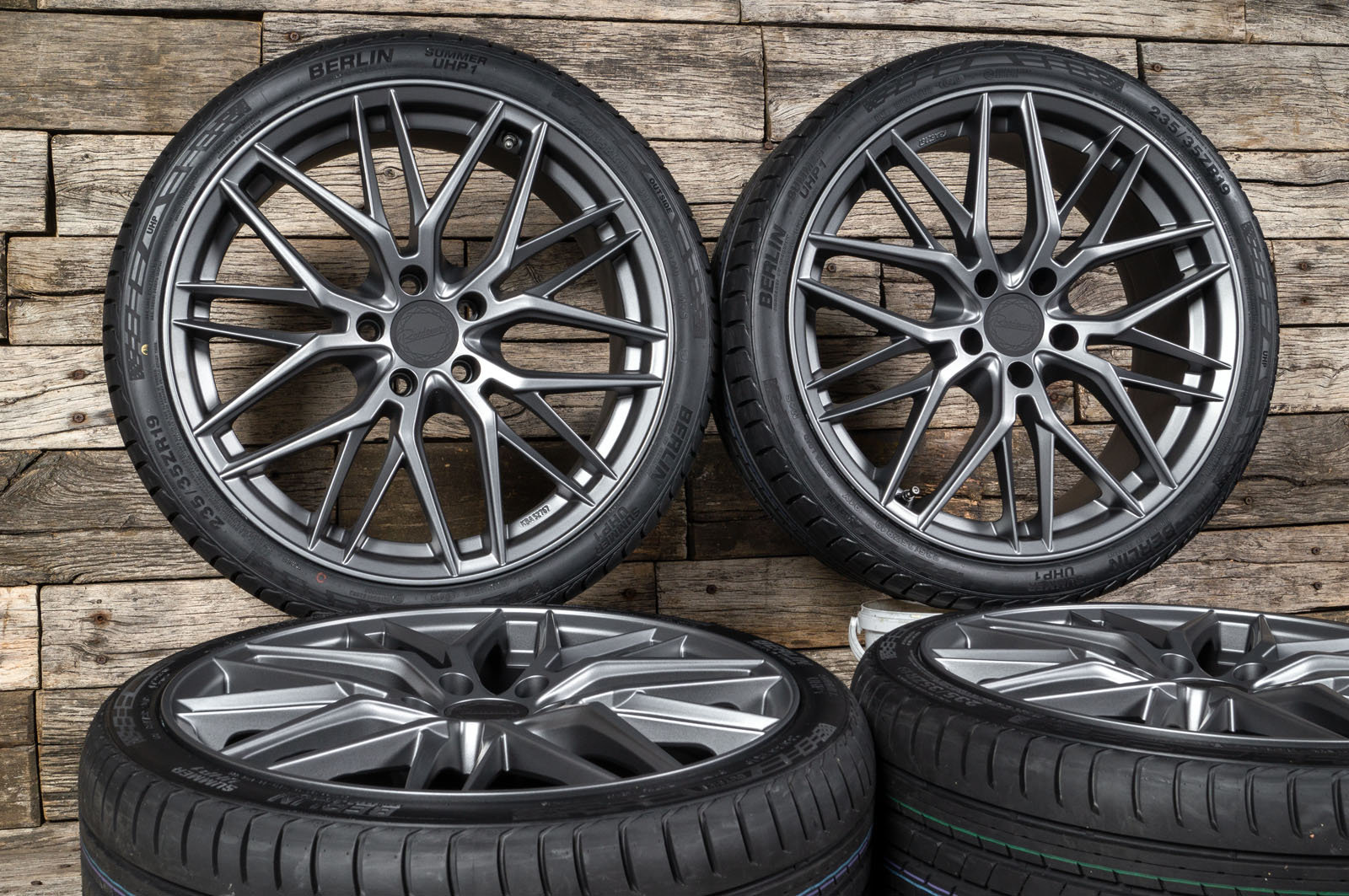 4x neue Ganzjahreskompletträder (montiert und gewuchtet) in 19 Zoll - Felge: RW01 8,5x19 ET35 5x112 Grey Matt - Reifen: Tageseinkauf (Tracmax, Tristar, Fortuna etc.) 235/35 R19 - 1x ABE/Gutachten - 4x Nabendeckel Raederwerk (Audi Deckel nicht enthalten) - gegen Aufpreis mit Reifendrucksensoren RDKS lieferbar