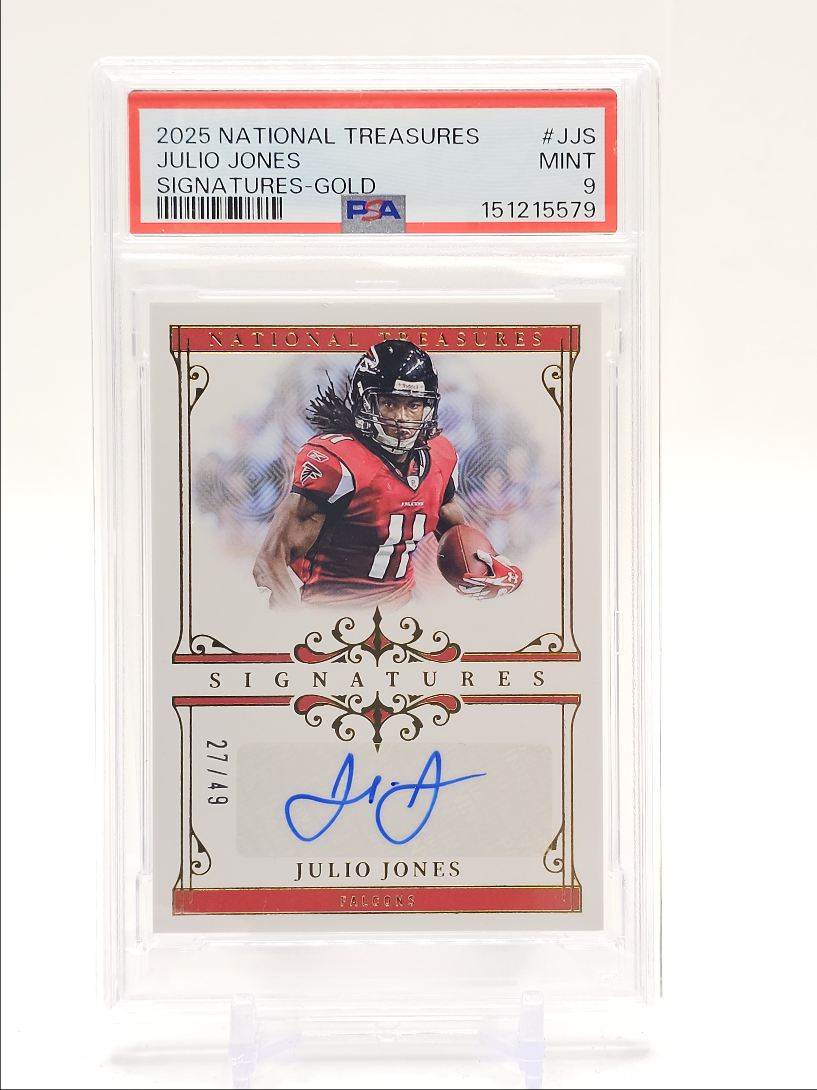 JULIO JONES 2025 NATIONAL TREASURES SIGNATURES GOLD AUTO /49 PSA 9 Q2754