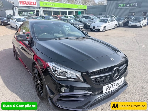 This 2017 Mercedes Benz CLA45 AMG Yellow Night Edition boasts exceptionally low mileage for its age, having covered just 57,000 miles and a service history at 10K, 24K, 26K, 35K, 40K, 47K. This striking four wheel drive model is powered by a potent 2.0 litre petrol engine and meets Euro 6 emissions standards. It comes with a 3 month warranty for your peace of mind and its MOT is valid until October 2026. Notable features include THERMOTRONIC dual zone luxury automatic climate control, the Audio 20 radio CD system with Bluetooth connectivity, and LED High Performance headlamps with integrated daytime running lights. The car also benefits from Parking Pilot with front and rear sensors, and automatic headlamp activation for convenience in dark conditions. The performance of this CLA45 AMG is truly impressive, with a rapid 0-60mph acceleration time of just 4.2 seconds, demonstrating its superior capability compared to other vehicles in its class. This exceptional acceleration, combined with the advanced technology and premium features, makes this Mercedes Benz a compelling choice for those seeking a dynamic and well equipped driving experience. Opening hours are 9.00am - 5.30pm Mon to Sat and 10.00am-5pm Sun.. All major debit cards accepted. Finance and Warranties are available. Approved Cars make it our business to try to get you a good deal on your purchase & if you require finance we can help no matter what your financial situation. The vehicle specifications are provided by Autotrader and may differ from the actual vehicle. Please verify that the features most important to you are present, as the specifications are auto-generated by Autotrader. All of our cars are HPI checked and come with a 3-month mechanical breakdown warranty as standard (excluding trade clearance cars), HPI certificate & MOT print out. We also offer a drive away same day facility and a home delivery facility. We can face time you a live demo of the car of your choice upon request.19in Alloy Wheels - AMG Cross Spoke Painted Matt Black with Rim Flange Painted Yellow, ABS - Anti-Lock Braking System with BAS - Brake Assist, Active Bonnet, Active Brake Assist with Hold Function and Hill Start Assist, Adaptive Brake Assist, Adaptive Brake Lamps, Air Vent Surrounds in Yellow, Airbag - Kneebag for Driver, Airbags - Dual Stage - Driver and Front Passenger, Airbags - Sidebags for Driver and Front Passenger, Airbags - Windowbags for Driver and Front Passenger, Ambient Lighting - Interior Door Handles, AMG Aerodynamics Package, AMG Bodystyling, AMG Drive Unit with Leather-Trimmed Gear Shift, AMG High-Performance Braking System with 3-stage ESP, AMG Instrument Cluster with Colour Display and AMG Menu, AMG Night Package, AMG Performance Seats, AMG Radiator Grille with Twin Louvre, AMG Spoiler Lip, AMG Sports Exhaust System with Two Twin Black Chrome Plated Tailpipes, AMG Sports Suspension, Anti-Theft Protection Package, ARTICO Leather Upper Dash Trim with Yellow Contrast Stitching, ATTENTION Assist, Audio 20 Radio-CD, Automatic Child Seat Recognition Sensor, Automatic Front Passenger Airbag Deactivation, Beltline Strips - Black, Bodystyling - Foil Stripes, Bodystyling - Inserts in Side Sill Panels with Yellow Highlights, Bodystyling - Yellow Highlights on Diffuser - Rear Wing and Mirror Housings, Brake Calipers with AMG Lettering at Front and Rear, Brake Pad Wear Indicator, Bumpers - Body Coloured, Childproof Locks - Manually Operated for Rear Doors and Electrically Operated for Rear Power Windows, Courtesy and Warning Lights in Front Doors and Boot Lid, Crash-Responsive Emergency Lighting, Cruise Control with Limiter, DAB Digital Radio Tuner, Door Handles - Body Coloured, Door Mirrors - Electrically Adjustable and Heated, Door Mirrors - Painted Black with Integrated LED Indicators and Aspherically Curved Mirror Glass, Double Cup Holder in Centre Console, Dynamic Select, Electric Parking Brake, Electric Windows - 4, Electronic Key - Chrome Surround, ESP - Electronic Stability Programme with ASR - Acceleration Skid Control, ESP Curve Dynamic Assist - AMG Tuned, Exhaust System - Twin-Pipe with Rectangular Tailpipes in Polished Stainless Steel, First Aid Kit and Warning Triangle, Floor Mats with AMG Logo and Edging in Yellow, Fluid Level Warning Indicator for Fuel - Oil - Coolant and Washer Fluid, Footwell Lighting - Front and Rear, Glass - Rear Windscreen - Heated with Timer Control, Headlamp Assist - Automatic Headlamp Activation in Dark Conditio