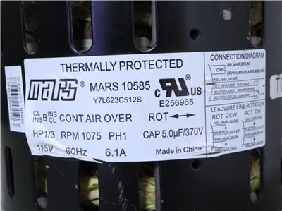 MARS 10585 Furnace Blower Motor 1/3 HP 1075 RPM 1PH 115V 60Hz