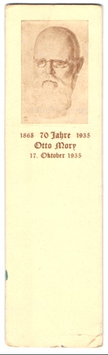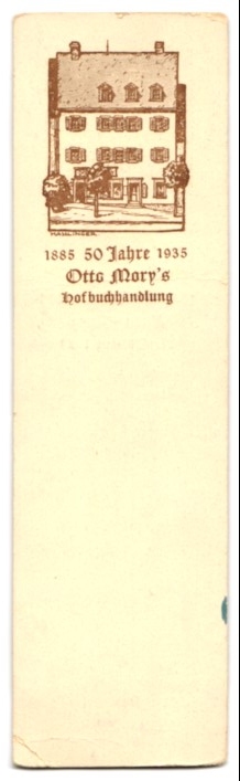 Lesezeichen Otto Mory Hofbuchhandlung zum 70 Jährigen, Rückseite Grafik von Küstler Hasslinger