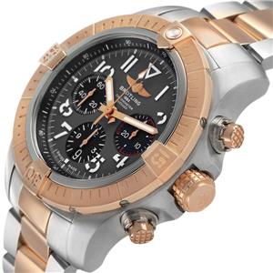 Grey dial with white arabic numerals. Date aperture at 6 o’clock. Rose gold baton luminous hands. Large rose gold-tipped central chronograph seconds hand. Three chronograph subdials -- 30 minutes, 12 hours, and small seconds. |
