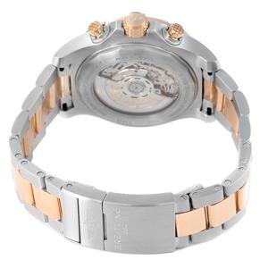 Stainless steel case 45 mm in diameter with rose gold screw down crown and pushers. Exhibition sapphire crystal caseback. This edition is limited to 250 pieces. |