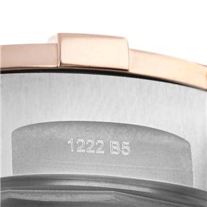 Rose gold unidirectional rotating bezel. 0-60 elapsed-time. Four 15-minute markers. |