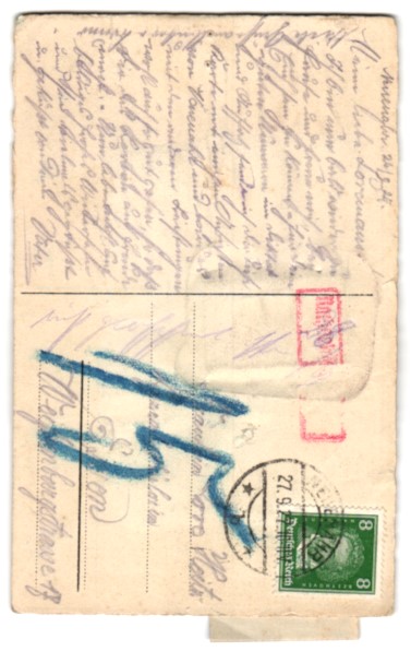 gelaufen 1927, Stecknadelloch oben mittig, guter Zustand