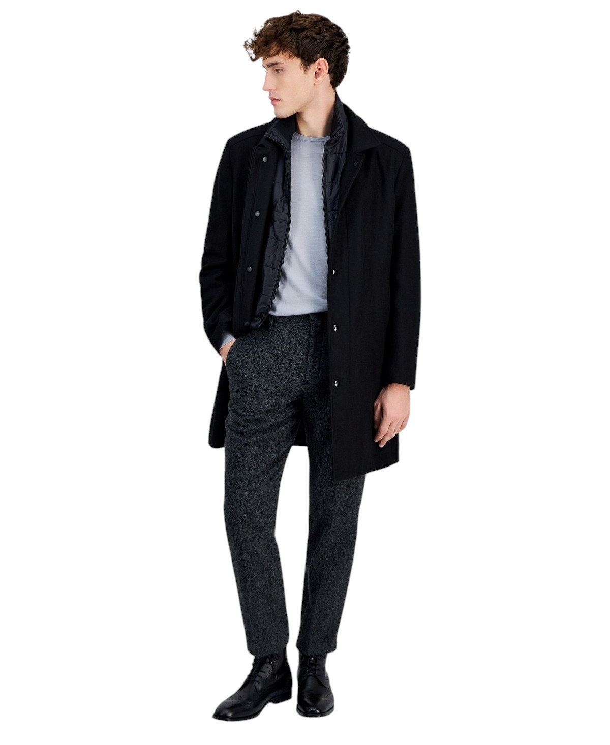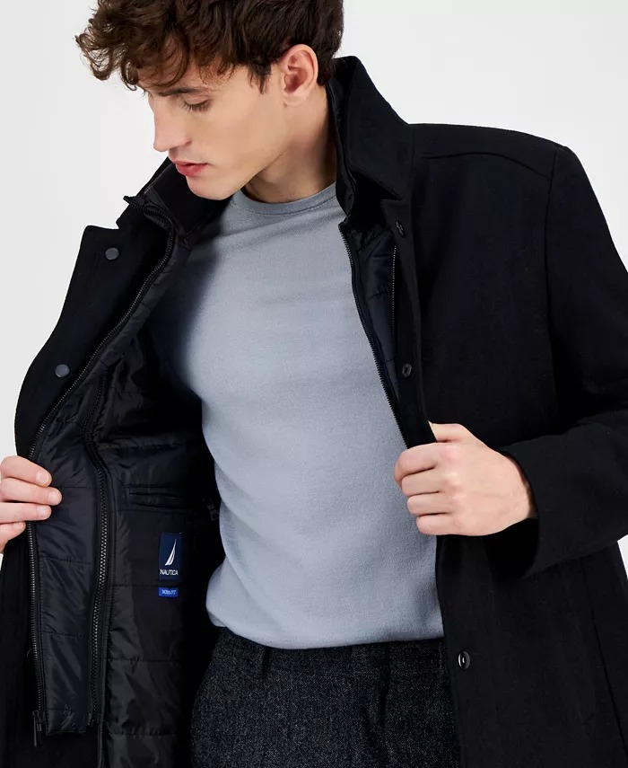 Nautica Mens Classic-Fit Bib Wool Overcoat Coat 48L Black
