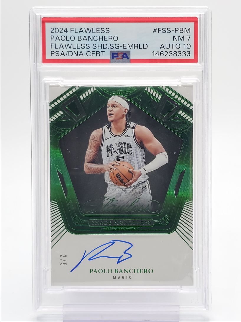 PAOLO BANCHERO 2024-25 FLAWLESS SHADE SIGNATURES EMERALD AUTO /5 PSA 7 Q4935