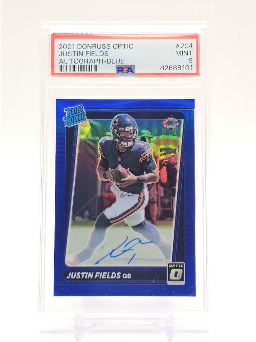 JUSTIN FIELDS 2021 DONRUSS OPTIC RATED ROOKIE BLUE RC AUTO /99 PSA 9 Q3286