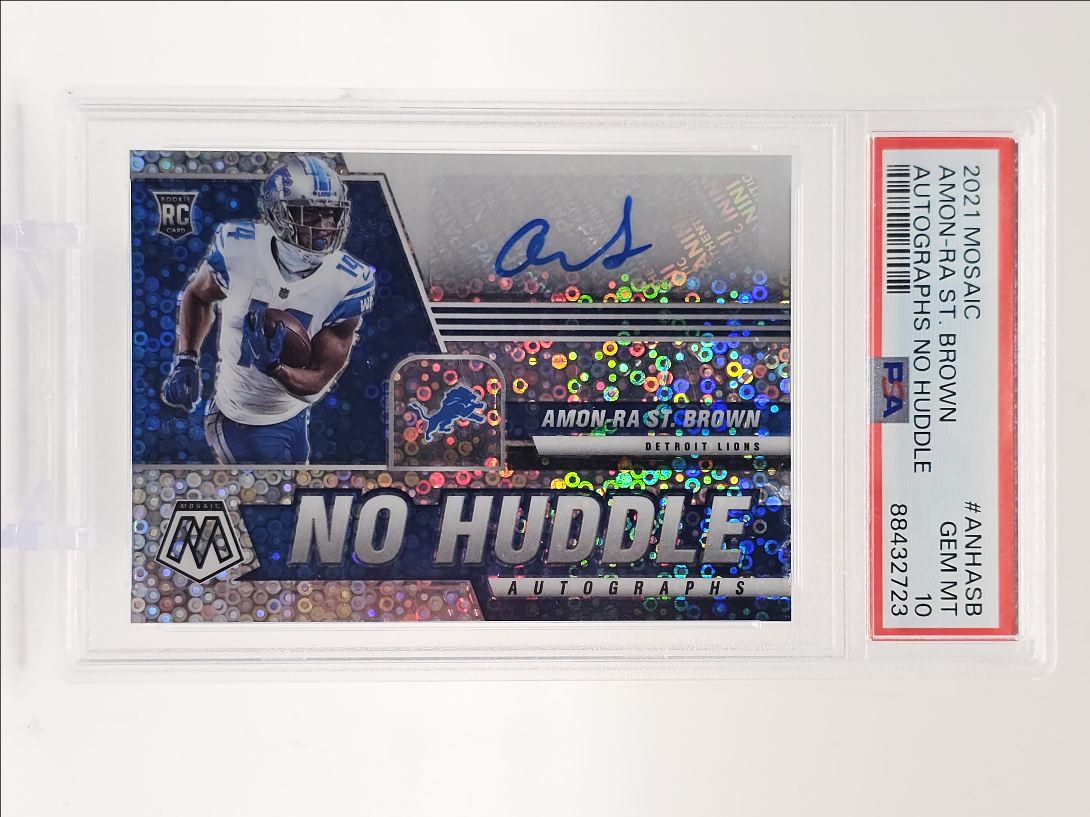 AMON-RA ST. BROWN 2021 MOSAIC ROOKIE AUTOGRAPH NO HUDDLE RC AUTO PSA 10 Q0004