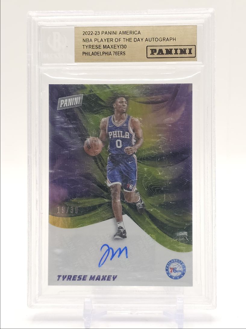TYRESE MAXEY 2022-23 PANINI AMERICA PLAYER OF THE DAY AUTO /30 BGS Q0004