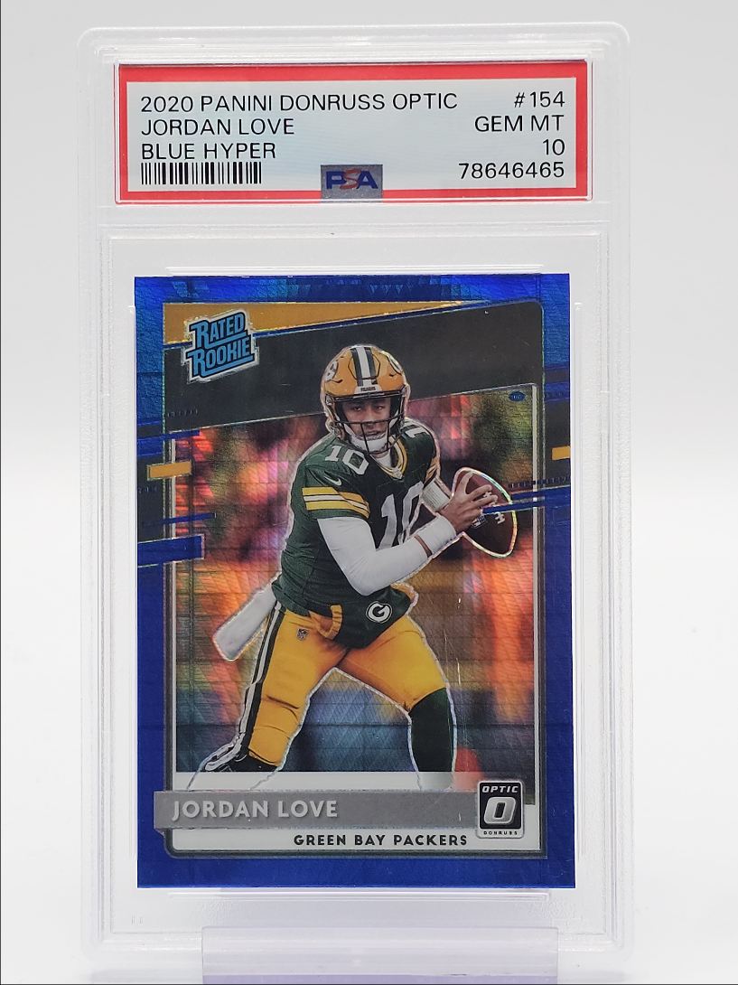 JORDAN LOVE 2020 DONRUSS OPTIC RATED ROOKIE BLUE HYPER RC PSA 10 Q2289
