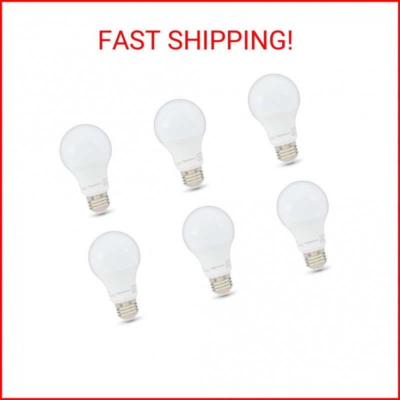 Amazon Basics 60W Equivalent, Daylight White, Non-Dimmable, Energy Efficient, 10,000 Hour Lifetime, A19 LED Light Bulbs, 6-Pack