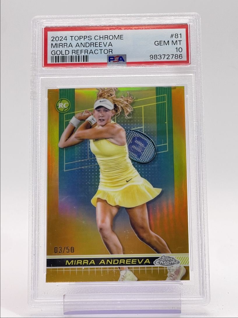 MIRRA ANDREEVA 2024 TOPPS CHROME ROOKIE GOLD REFRACTOR RC /50 PSA 10 Q1816