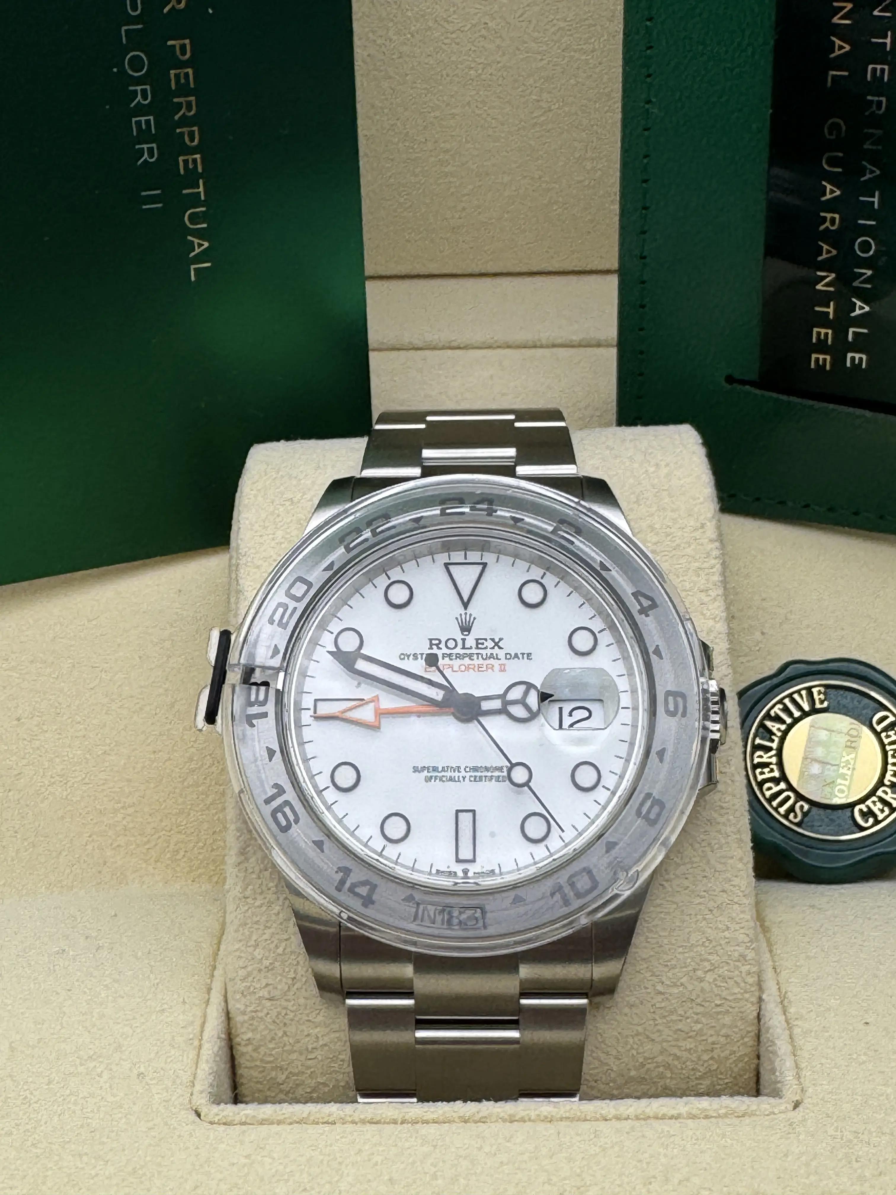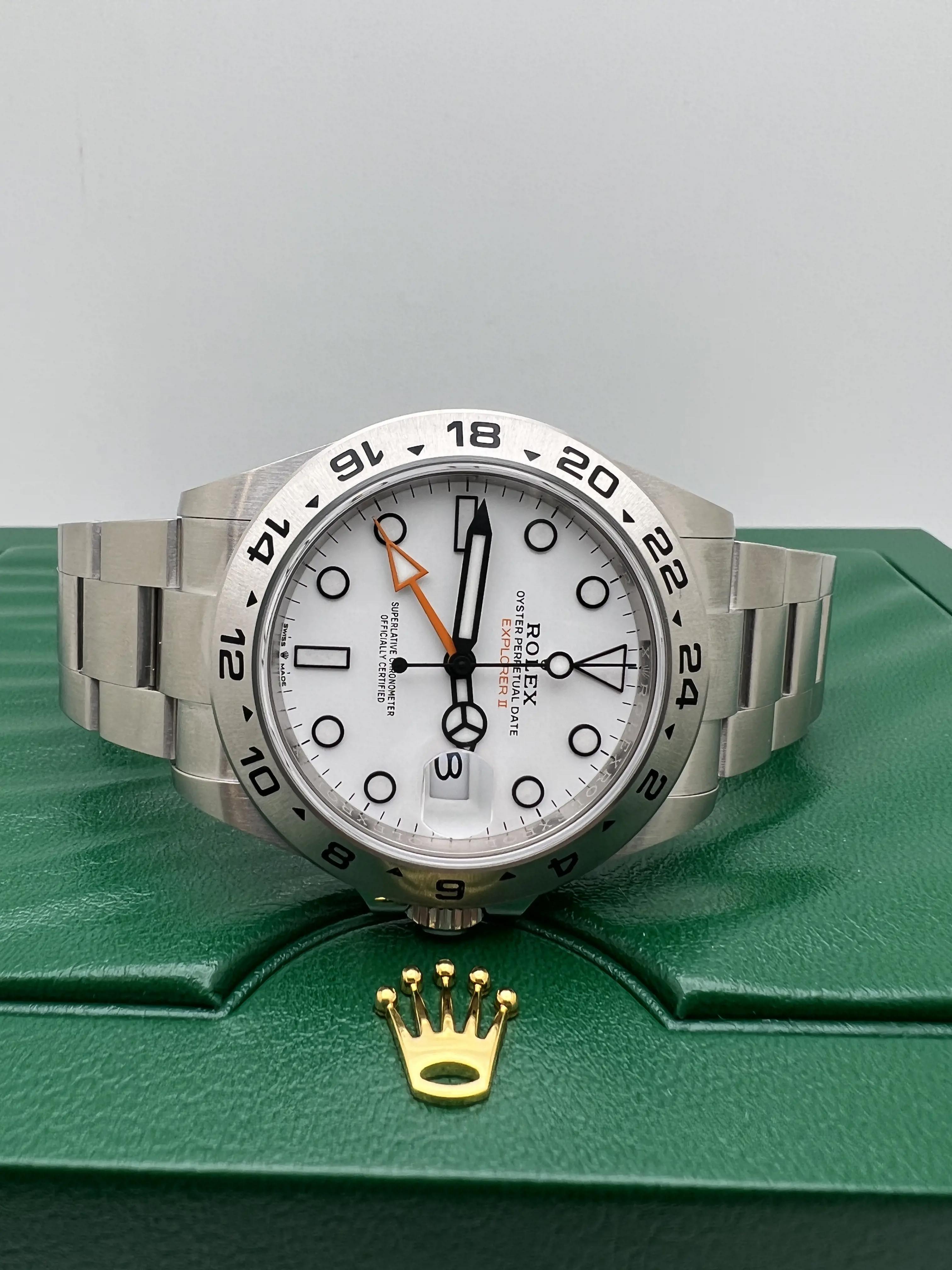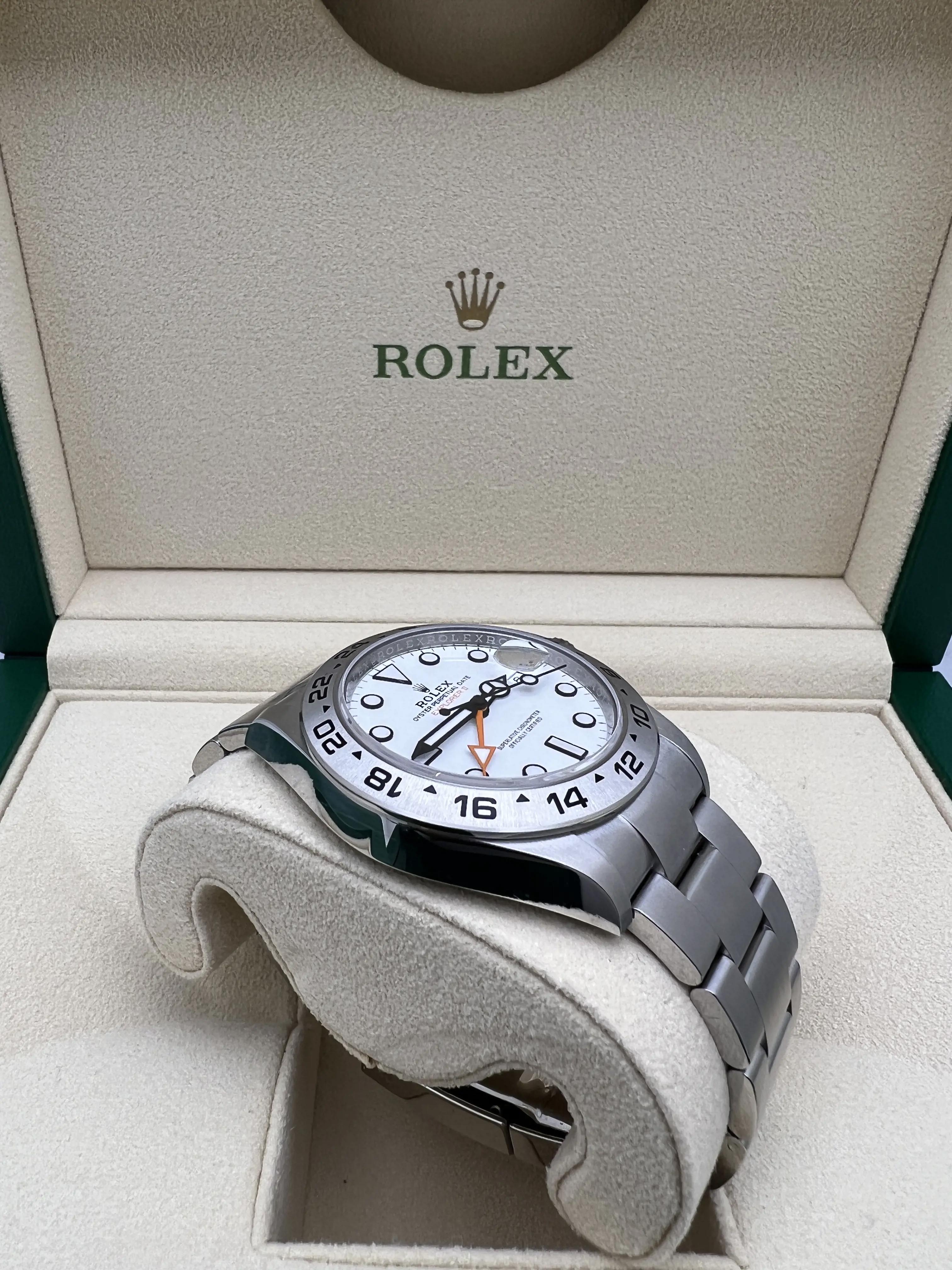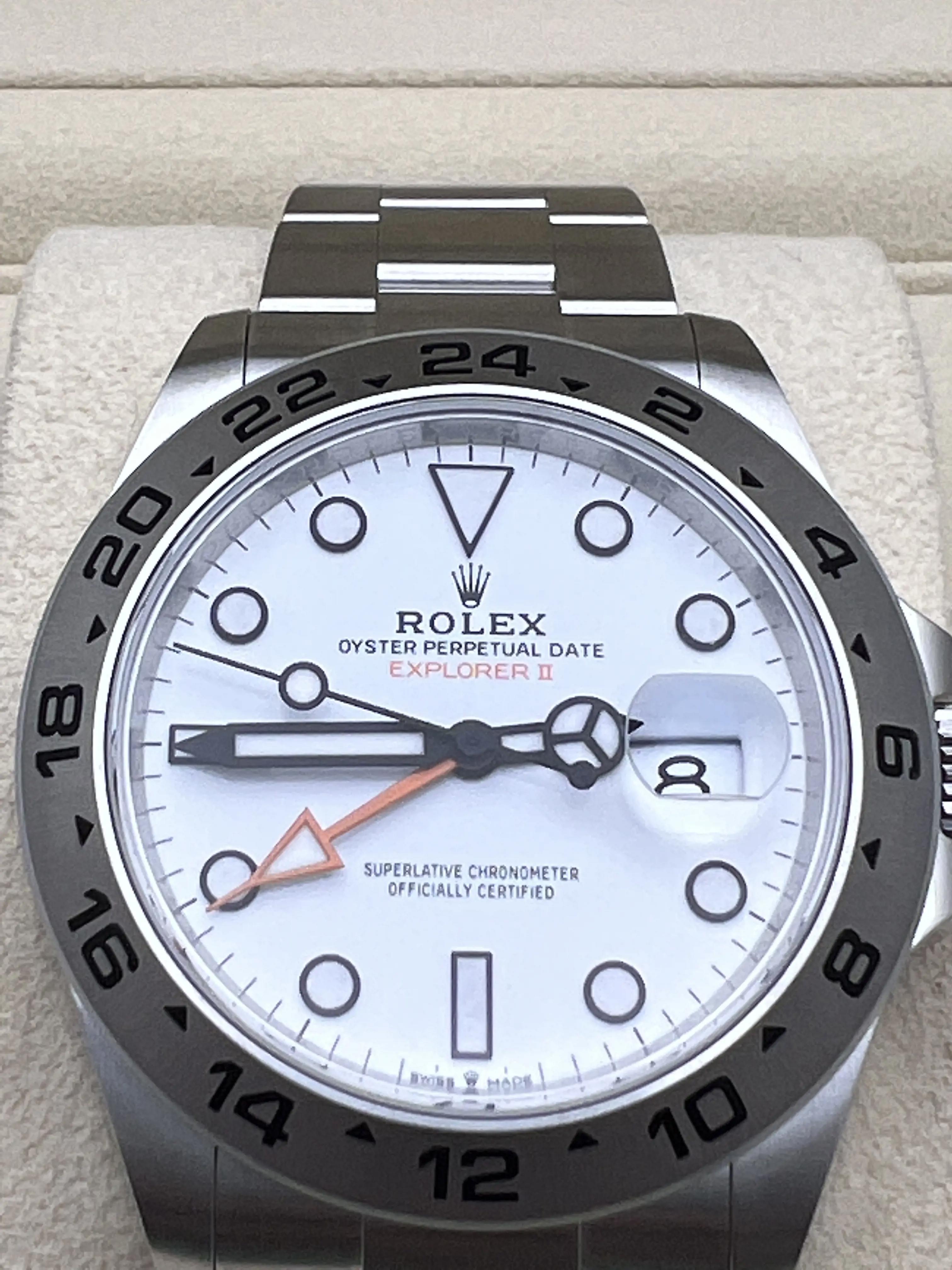 New in box Rolex Explorer II reference 226570, White "Polar" Dial. Watch comes Complete with Box, Papers, Manuals & Hangtag.