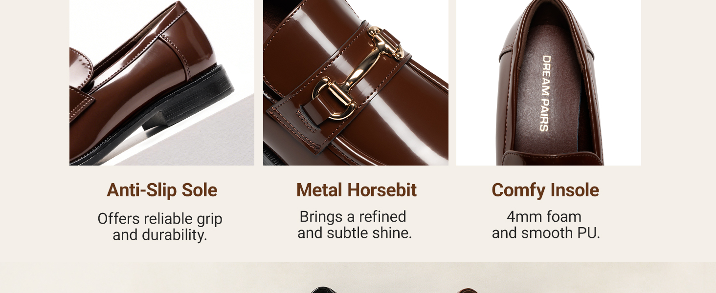 Timeless Horsebit Style: Sleek metal horsebit detail paired with a smooth PU upper creates a chic retro-modern look, perfect for commuting and casual outings.