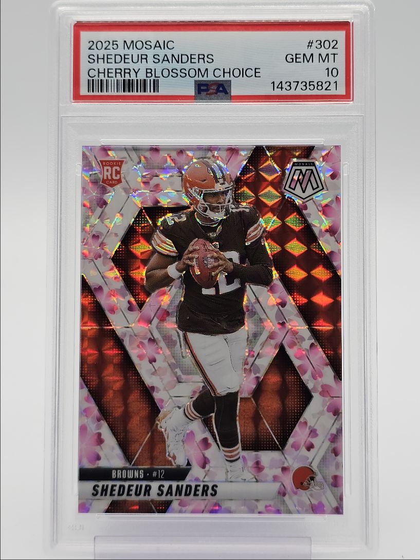 SHEDEUR SANDERS 2025 MOSAIC ROOKIE CHERRY BLOSSOM CHOICE RC /20 PSA 10 Q2215
