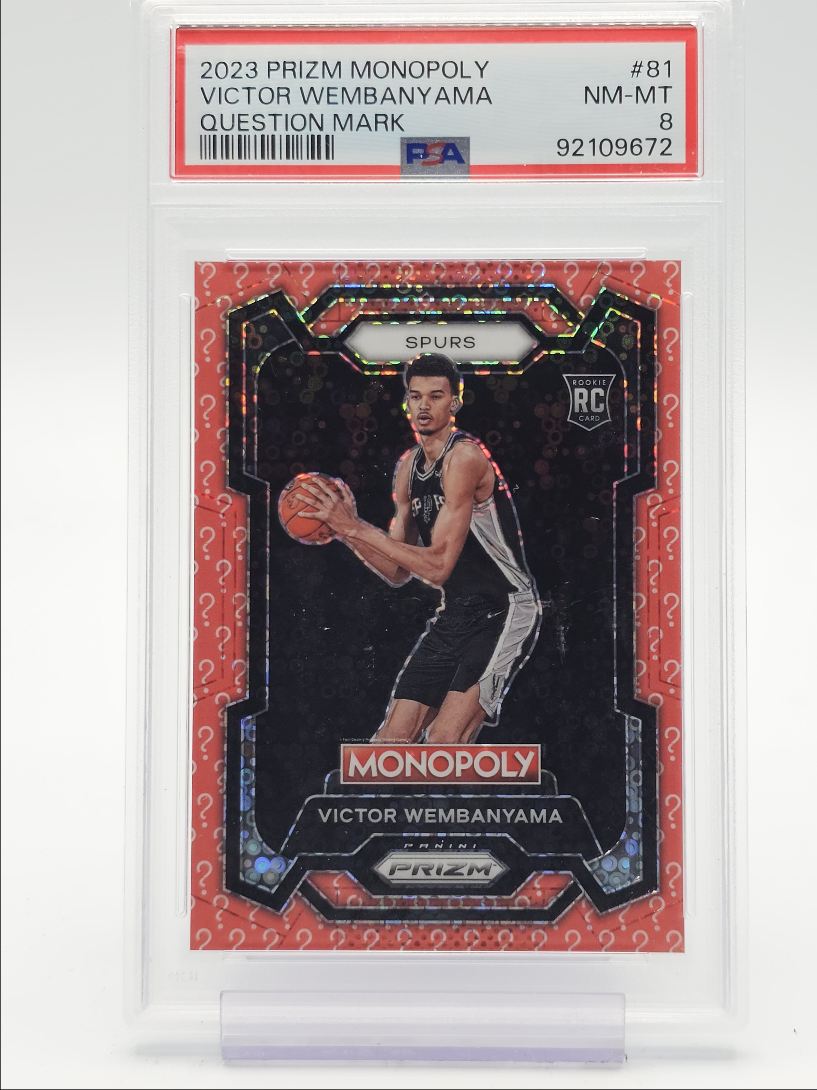 VICTOR WEMBANYAMA 2023-24 PRIZM MONOPOLY ROOKIE QUESTION MARK /25 PSA 8 Q5939