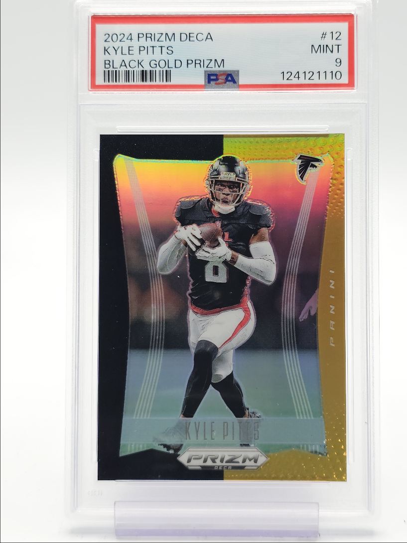 KYLE PITTS 2024 PANINI PRIZM DECA FOOTBALL BLACK GOLD 1/5 PSA 9 Q5939