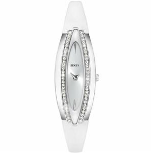 SEKSY 2566 ladies watch has a beautiful elongated oval chrome plated case and Swarovski crystal encrusted bezel.