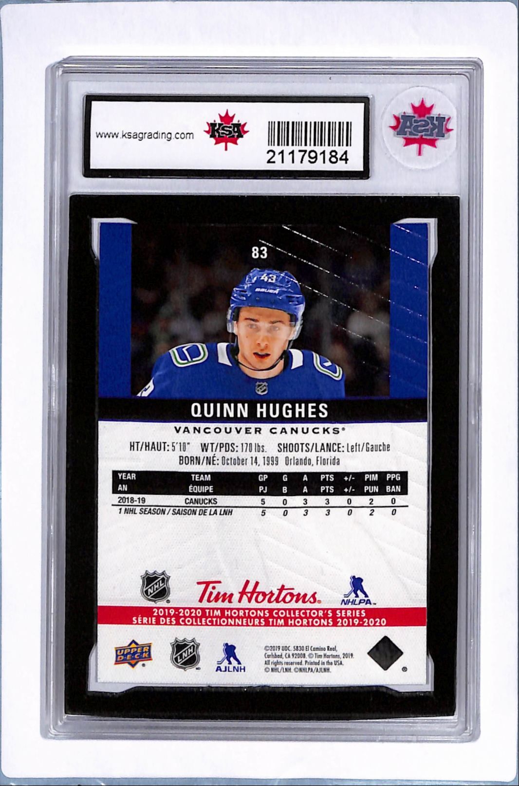 | 2019-20 Upper Deck Tim Hortons Quinn Hughes Rookie KSA 10 (Free Shipping $100+) |