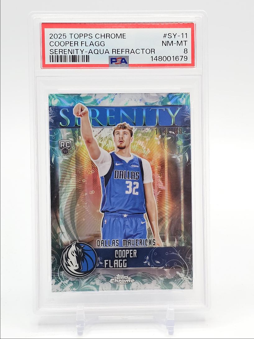 COOPER FLAGG 2025-26 TOPPS CHROME SERENITY ROOKIE AQUA A RC /199 PSA 8 Q0902
