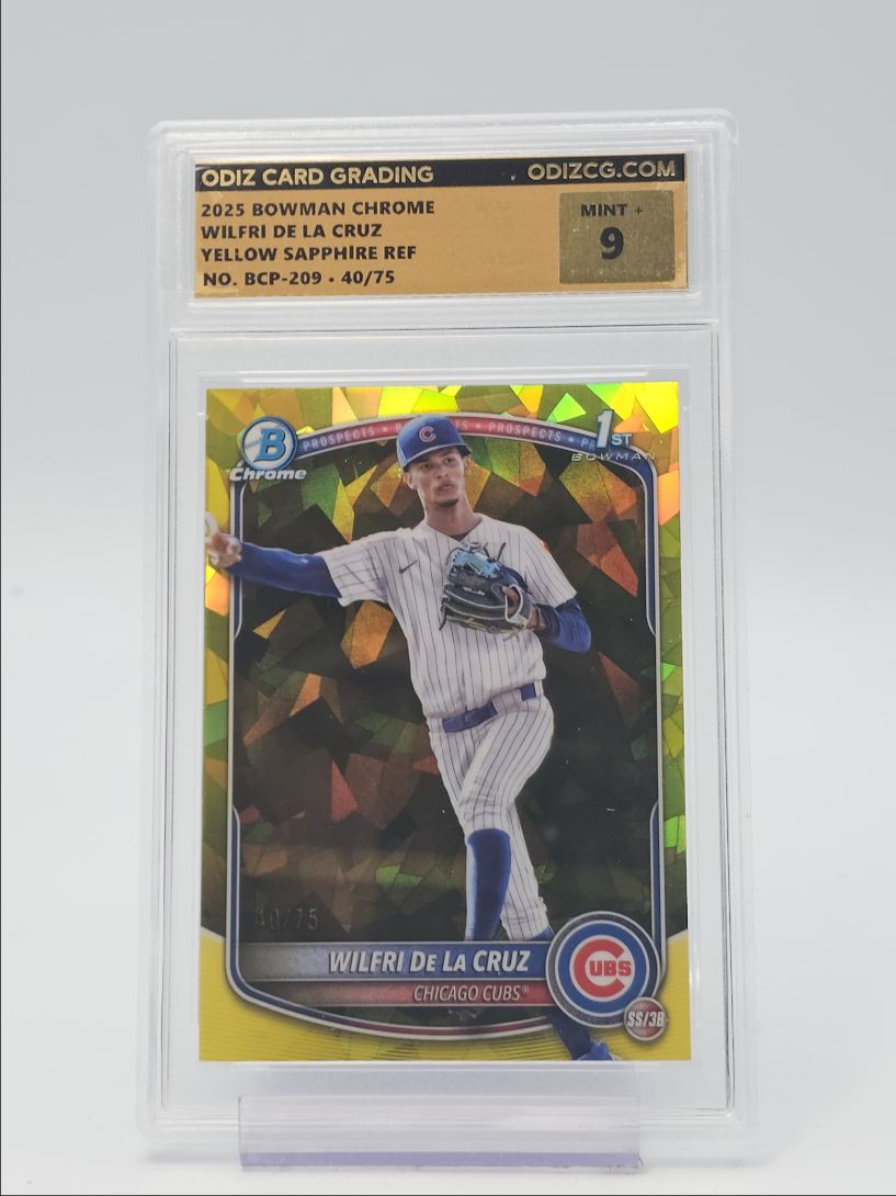 WILFRI DE LA CRUZ 2025 BOWMAN CHROME 1ST SAPPHIRE YELLOW /75 ODIZCG 9 Q4247