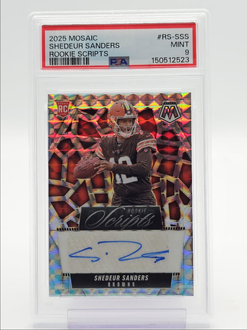 SHEDEUR SANDERS 2025 MOSAIC ROOKIE SCRIPTS SILVER MOSAIC RC AUTO PSA 9 Q4444