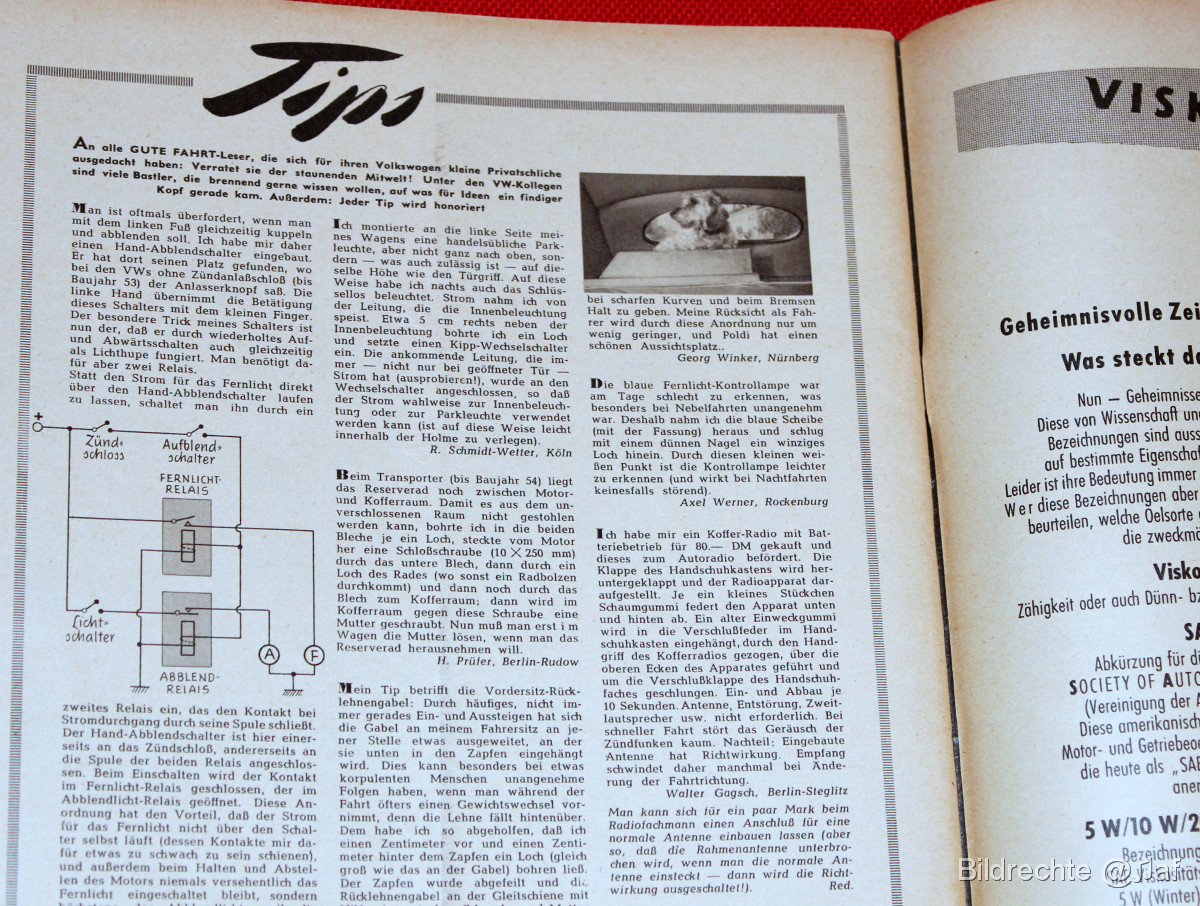 ein toller historischer Einblick in die 1950er Jahre - voller zeitgenössischem Zubehör, technischen Tips für die VWs der Zeit und schick inszenierten Fotos (heute schon zum schmunzeln)