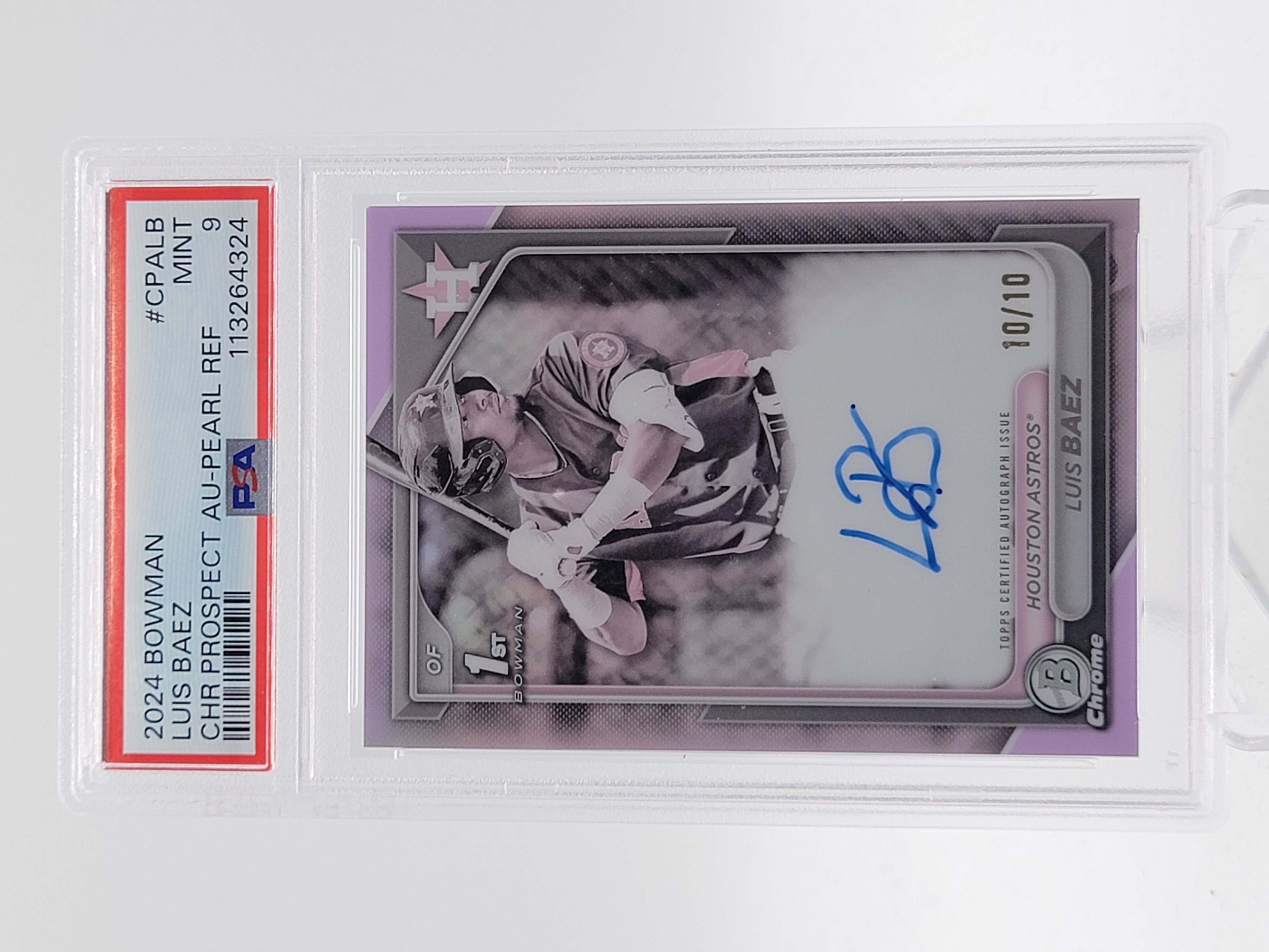 LUIS BAEZ 2024 BOWMAN CHROME 1ST PEARL REFRACTOR AUTO 10/10 PSA 9 #CPA-LB Q5966