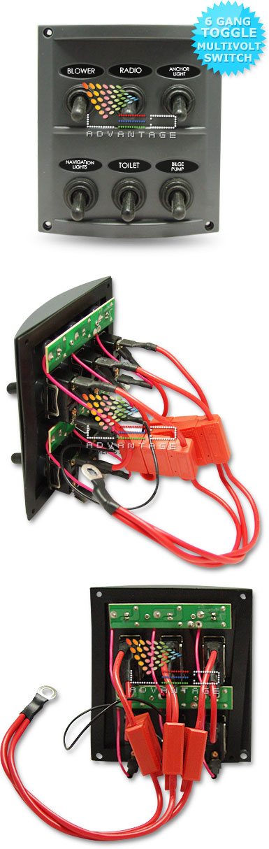 is the ultimate 6-Gang Splash-Proof marine switch panel. Please note the back images used are a generic picture supplied, it is important to note that this