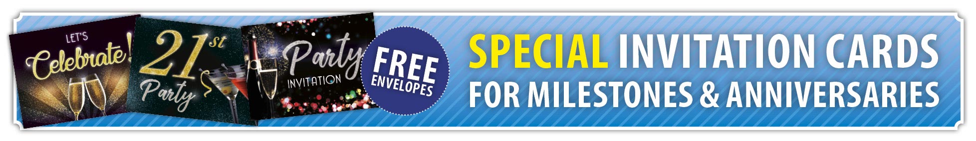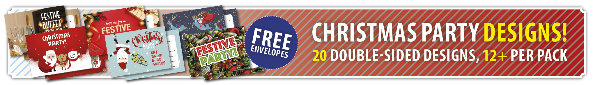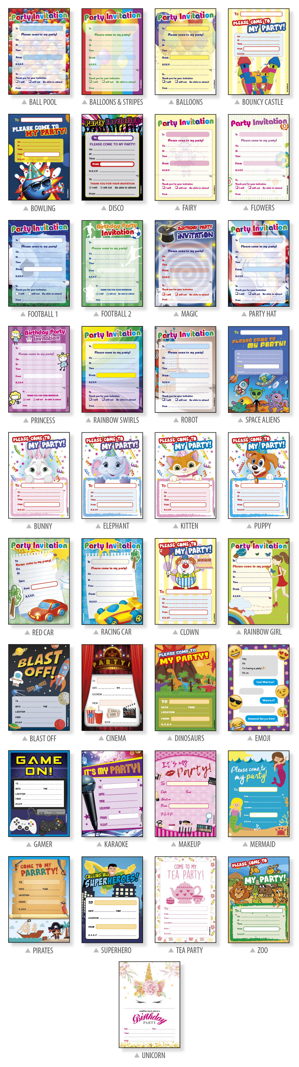 • Classic A5 size invitations (148.5 x 210mm) • Sold as pads of 20 invitations • C5 Envelopes available as an option • Choose from 24 high quality designs