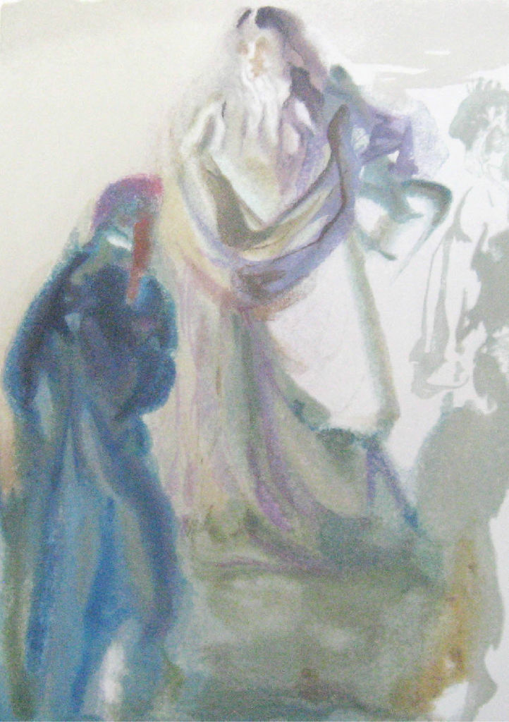 Despite the fact that he was born almost 600 years after DANTE'S death, the work of the great surrealist painter fits so well with the great writer's work that one might almost believe them to be contemporaries. DALI seems to have painted his representation of each canto as DANTE was writing, as if he was looking over his shoulder.