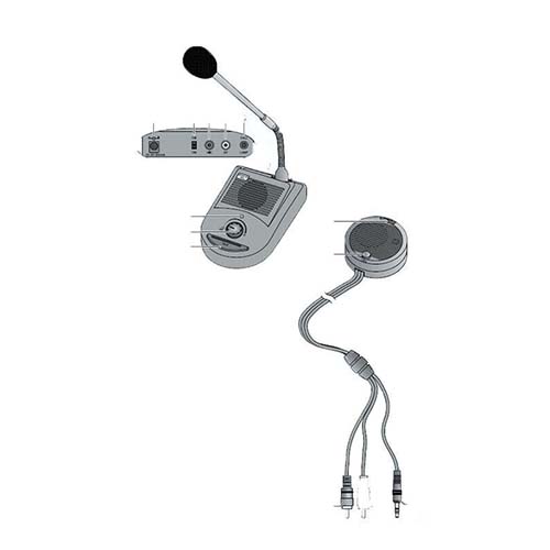 Consigliato per sportelli, vigilantes di banca, vendita con vetro blindato per atti vandalici, reception, ticket, ecc. Composto da microfono da tavolo a collo di cigno 300mm staccabile con contatto XLR e da un altoparlante separato con microfono integrato e tasto di chiamata. Capsula electret, a cardioide. Altoparlante con cavo 3 metri. Regolazione volume.
