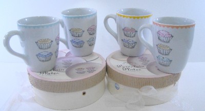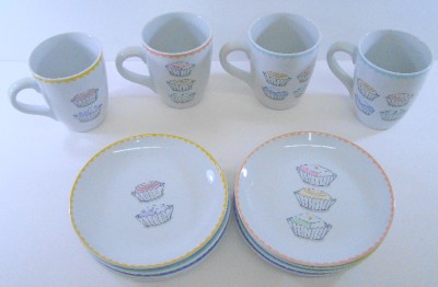 There are Four 12oz Cupcake Coffee Mugs 2003 and Eight 6 1/2" diameter Cupcake Dessert Plates 2001. (Please See Pictures for All Details).
