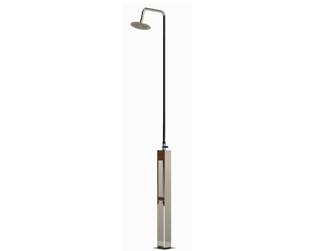 - Gehäuse: Witterungsbeständiges Holz, Edelstahl V2A, Wasseranschluss an der Dusche durch ½“ Außengewinde