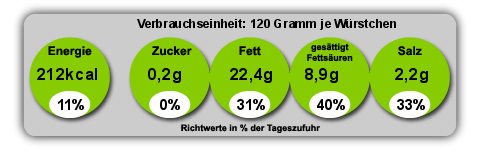Täglich frisch, mit Naturgewürzen geschmackvoll abgeschmeckt. Magere Fleischauswahl garantiert vollen Genuss und beste Qualität. Der Versand erfolgt vorgebrüht. Heimisches Fleisch aus frischer Schlachtung und die handwerkliche Herstellung sind die Grundlage für außergewöhnliche Qualität. Die Herstellung erfolgt nach guter Metzgertradition nur mit Naturgewürzen. Hilfs- und Zusatzstoffe werden nur aufgrund von technologischer Notwendigkeit in geringster Menge verwendet. Auf Geschmacksverstärker und industrielle Haltbarkeitsverlängerer verzichten wir bewusst und glauben so dem Verbraucherwunsch zu entsprechen.